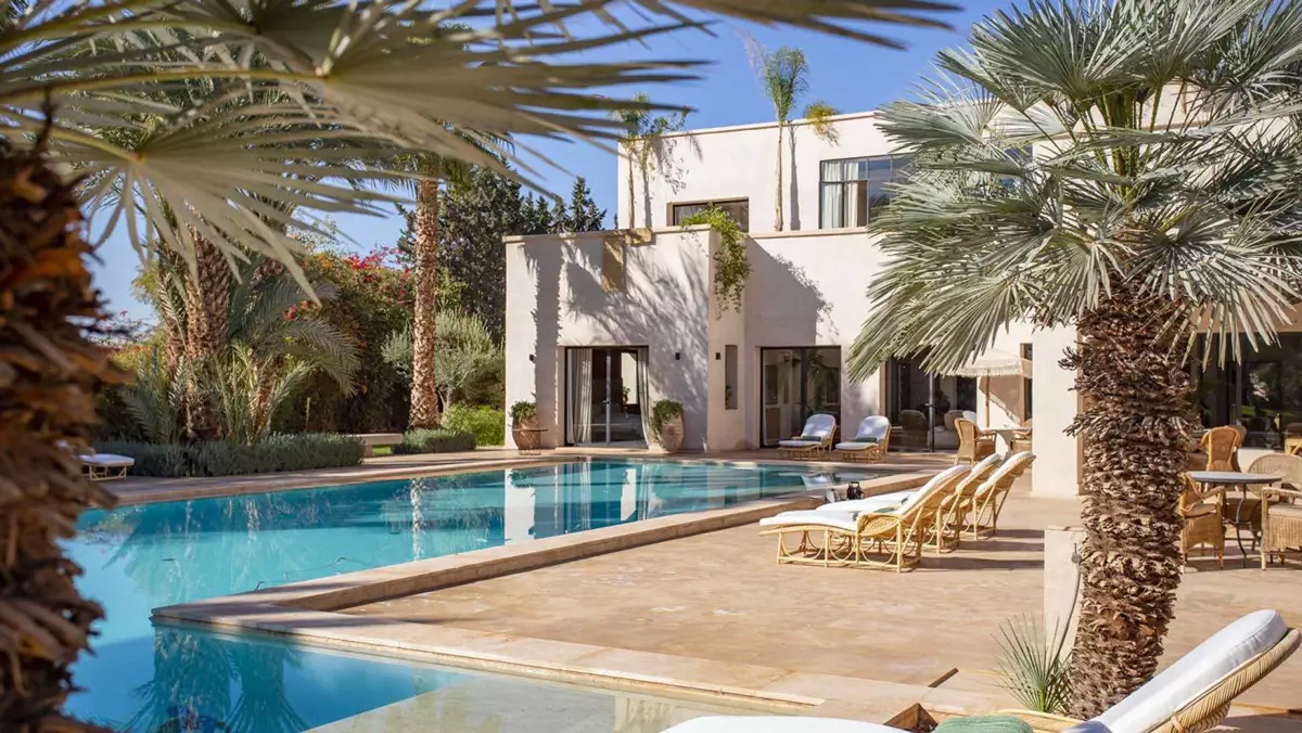 Villa Jasmine, under the Saharan sun, offers a large garden planted with olive trees, orange trees and palm trees. In the middle, a 300 m2 pool is rolled out and its tree-lined central small island.